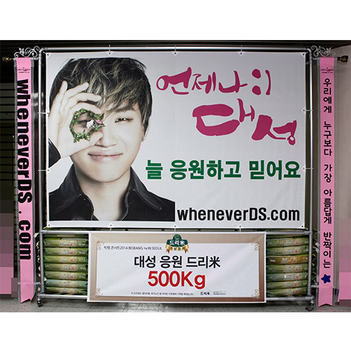 ※ 주문하시는 분의 핸드폰번호와 이메일주소를 반드시 기재하시기 바랍니다. 배송완료문자 및 사진을 보내드립니다. ▶ 상품설명 : 응원메세지와 팬덤매세지 리본, 대형배너가 부착된 드리미 프레임에 농협쌀 10kg 50포를 배송합니다. (현장에는 모형쌀) ▶ 이미지 규격 (이미지제작시주의사항) - 대형배너: 가로220cm X 세로150cm (해상도 최소150dpi / 권장300dpi)