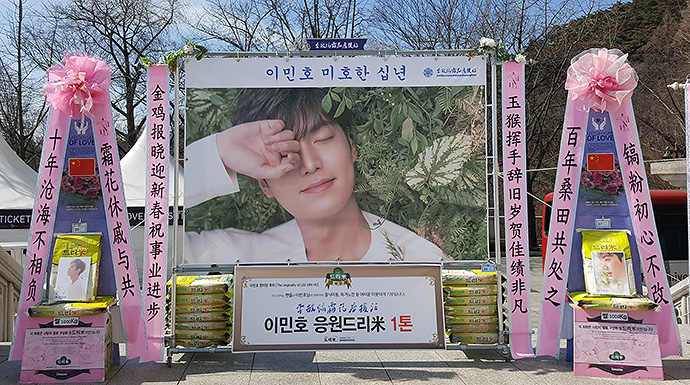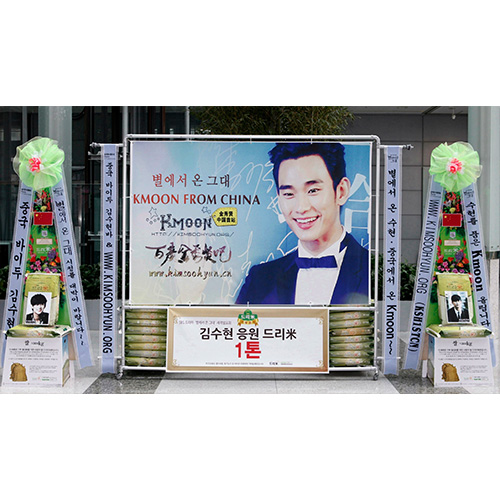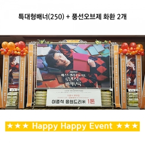 ※ 주문하시는 분의 핸드폰번호와 메일주소를 반드시 기재하시기 바랍니다. 배송완료문자 및 사진을 보내드립니다. ▶ 상품설명 : 배너 프레임 좌우에 응원메세지와 팬덤매세지 리본이 부착되고, 드리미 오브제화환 2개 및 특대형배너와 함께 쌀모형 10kg 100포를 배송합니다. ★★★ Happy Happy Event ★★★ 1톤이상주문고객에게 좌우 오브제대신 풍선드리미에 세로형 배너(가로 32cm x 세로 116cm)가 들어가는 풍선형드리미를 서비스로 교체해드립니다. (단, 기존오브제를 원하시는 경우에는 변경없이 기존오브제로 설치해드립니다.-주문시 선택해주시면됩니다.) ▶ 상품구성 및 이미지 규격 - 특대형배너 : 250cm X 150cm - 풍선오브제 사진 2ea : 가로 32cm X 세로 116cm (해상도 최소150dpi / 권장300dpi) (이미지제작시주의사항)