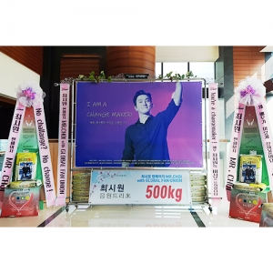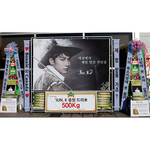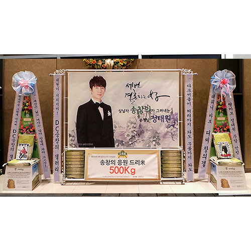 ※ 주문하시는 분의 핸드폰번호와 이메일주소를 반드시 기재하시기 바랍니다. 배송완료문자 및 사진을 보내드립니다. ▶ 상품설명 : 응원메세지와 팬덤매세지 리본, 대형배너가 부착된 프레임과 드리미 오브제화환 2개와 함께 농협쌀 모형 10kg 50포를 배송합니다. ▶ 이미지 규격 - 대형배너: 가로220cm X 세로150cm (해상도 최소150dpi / 권장300dpi) - 오브제화환용 A4이미지 2ea