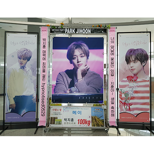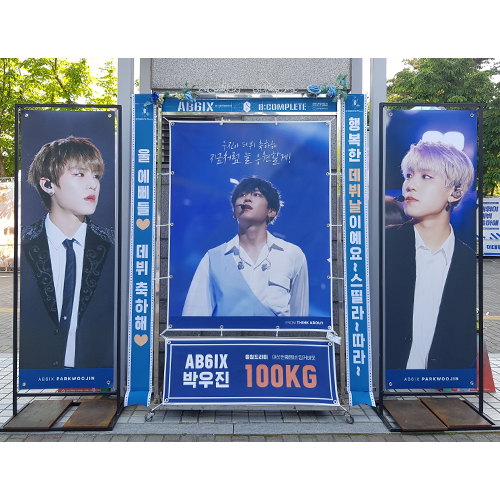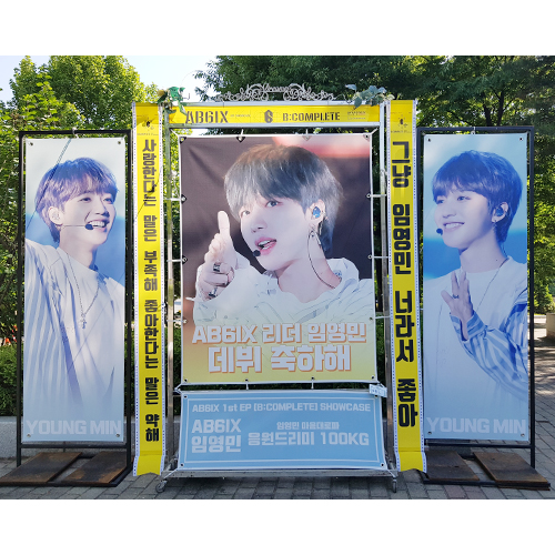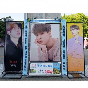※ 주문하시는 분의 핸드폰번호와 이메일주소를 반드시 기재하시기 바랍니다. 배송완료문자 및 사진을 보내드립니다. ▶ 상품설명 : 응원메세지와 팬덤매세지 리본, 중형배너가 부착된 드리미 프레임, 스틸배너 2개에 농협쌀 10kg 10포를 배송합니다. ▶ 2019년 5월부터 기존 x배너는 '스틸 배너'로 업그레이드 되었으며 이미지규격은 같습니다. 아래 사진 확인해주세요! ▶ 상품구성 및 이미지 규격 - 중형배너: 가로110cm X 세로140cm (해상도 최소150dpi / 권장300dpi) - 스틸배너 2개: 60x180cm (이미지제작시주의사항) *실측사이즈 약 가로 3M x 2.2M