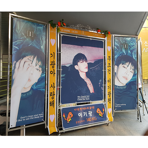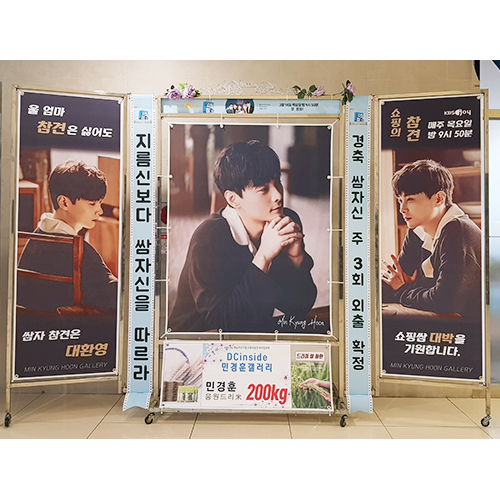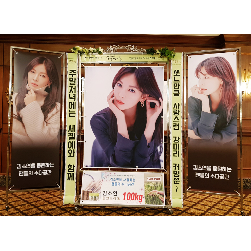 ※ 주문하시는 분의 핸드폰번호와 이메일주소를 반드시 기재하시기 바랍니다. 배송완료문자 및 사진을 보내드립니다. ▶ 상품설명 : 응원메세지와 팬덤매세지 리본, 중형배너가 부착된 드리미 프레임, 일체형 x배너에 농협쌀 10kg 10포를 배송합니다. 양쪽 X배너일체형으로 더욱 크고 포토존형태의 고급스러움을 보여줍니다! ▶ (옵션) 2019년 5월부터 기존 x배너는 '스틸 배너'로 업그레이드 되었으며 이미지규격은 같습니다. 아래 사진 확인해주세요! ▶ 상품구성 및 이미지 규격 - 중형배너: 가로110cm X 세로140cm (해상도 최소150dpi / 권장300dpi) - 일체형 X배너 2개: 60x180cm (이미지제작시주의사항)